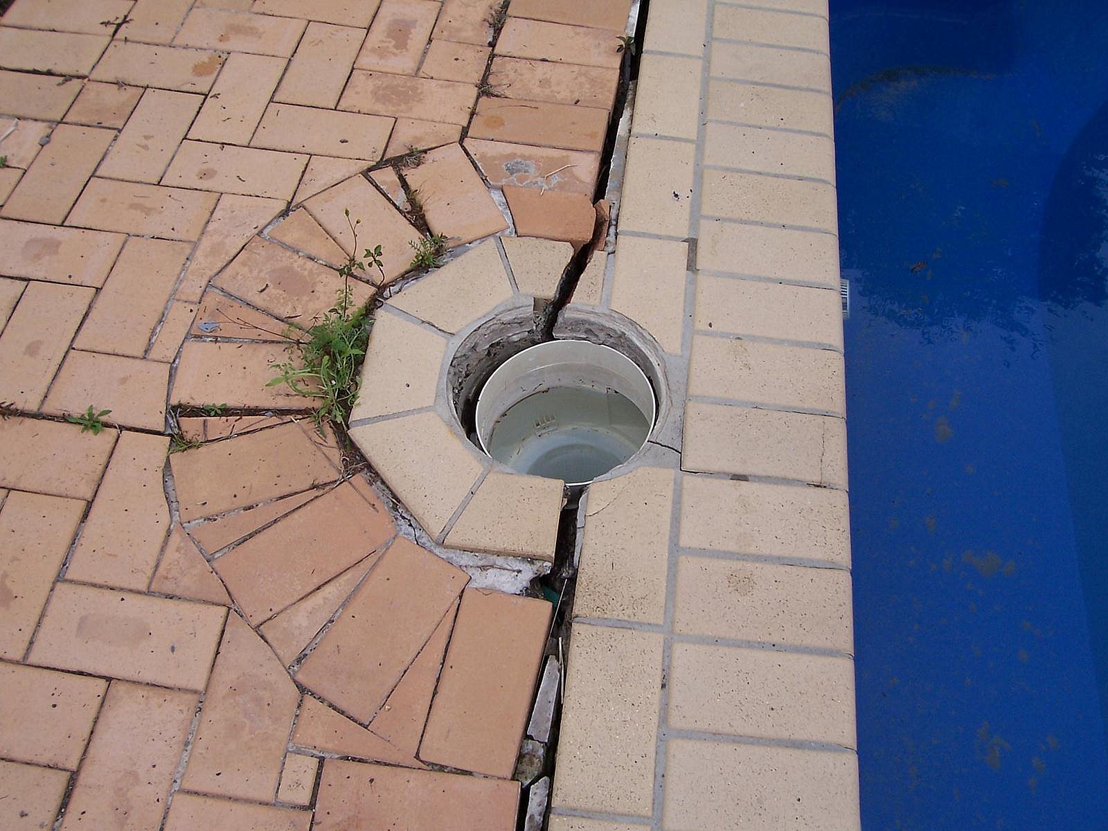 The concrete that has collapsed has cracked the pool skimmer, we located this using our dye testing equipment.